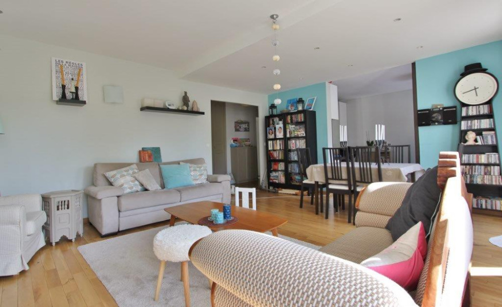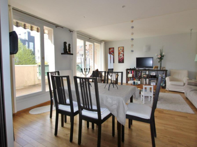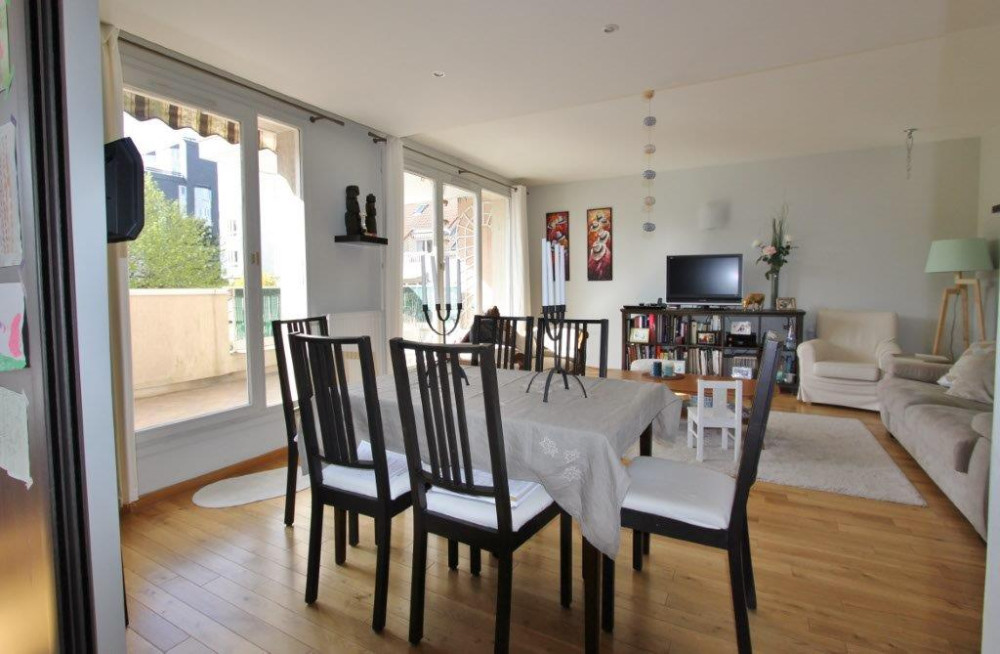 En plein cœur de Clamart dans le centre ville-mairie, dans la rue piétonne. Immeuble 1982 de bon standing, au 2ème étage avec ascenseur, un appartement de 94 m² comprenant une entrée avec grand placard dressing, un grand séjour ouvert sur une terrasse de 10 m² sans vis-vis sur la cité Leisnier (passage arboré bordé de maisons), une grande cuisine dinatoire aménagée, 3 chambres (17 m², 12 m² et 10 m² ) avec rangements. Une salle de bains (baignoire pare douche), un wc séparé. Une cave en sous-sol et un parking double, un parking visiteur avec accès protégé. Exposé Ouest sur la terrasse, le séjour et une des chambres, Est pour 2 chambres et la cuisine. Ensoleillé et calme, protégé des automobiles et au pied de l'ensemble des commerces. Bon état général, bien agencé et pièces confortables. Charges annuelles 3 000 € - DPE D 230 et E 54 GES - Immeuble soumis au statut de la copropriété 196 Lots (appartements, parkings, caves) Absence de procédure. 3 % TTC à la charge de l'acquéreur. Dossiers complets et diagnostics réalisés, Photos et plan sur demande. Visites sur RDV.