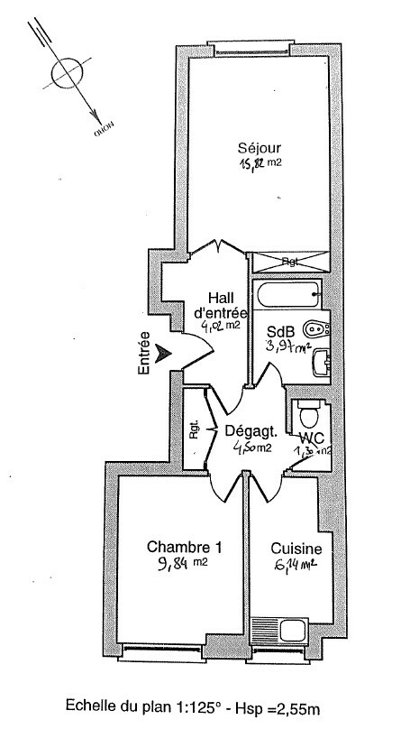 2 pièces de 45.59 m2, bien agencé avec de grandes pièces confortables,