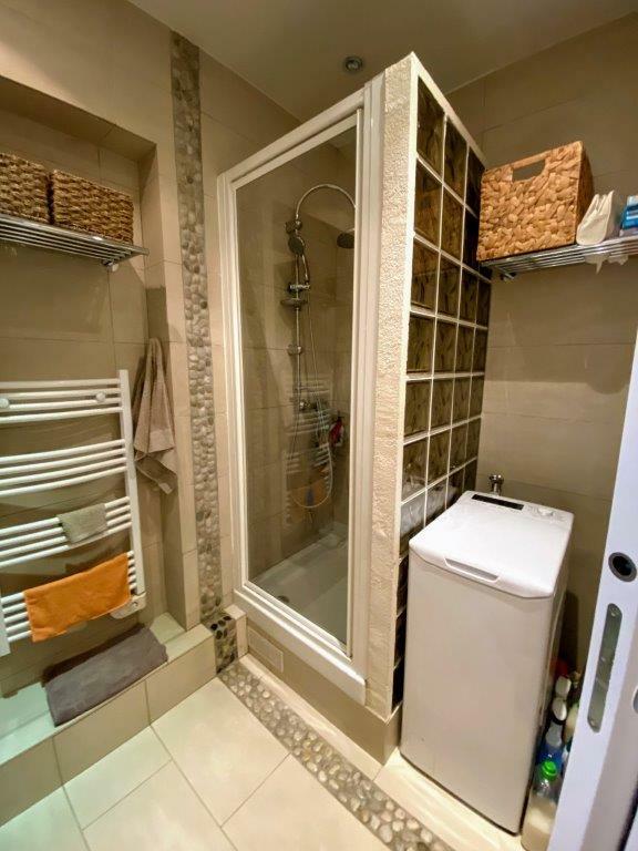 Une grande entrée, desservant une salle d'eau avec un espace Lave Linge, des toilettes avec vasque et l'espace nuit. Celui-ci comprend un dégagement et 2 belles chambres de 10 et 13m². Enfin, le salon est attenant à la cuisine aménagée et équipée. Aucun travaux à prévoir.