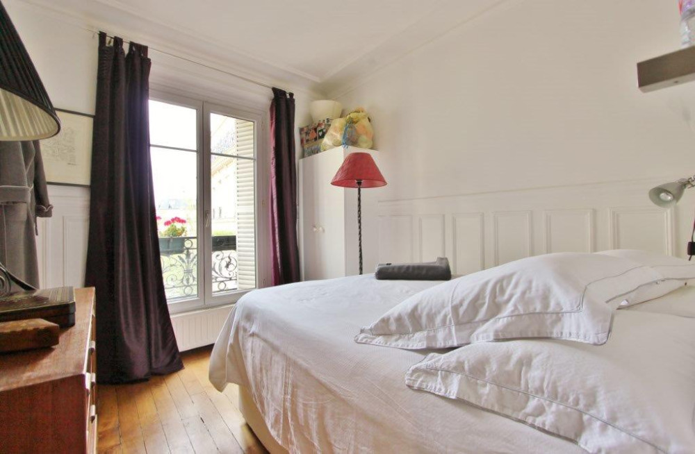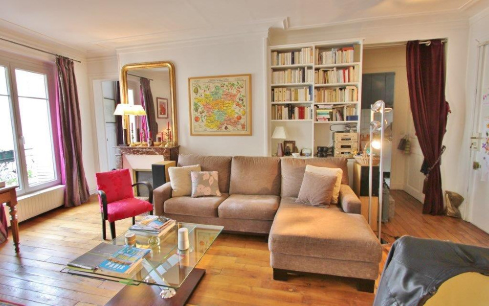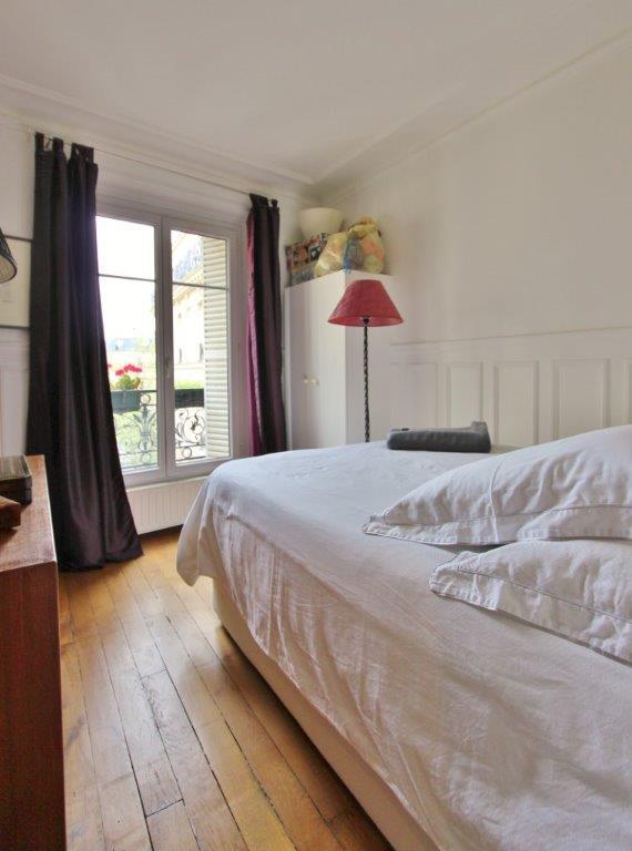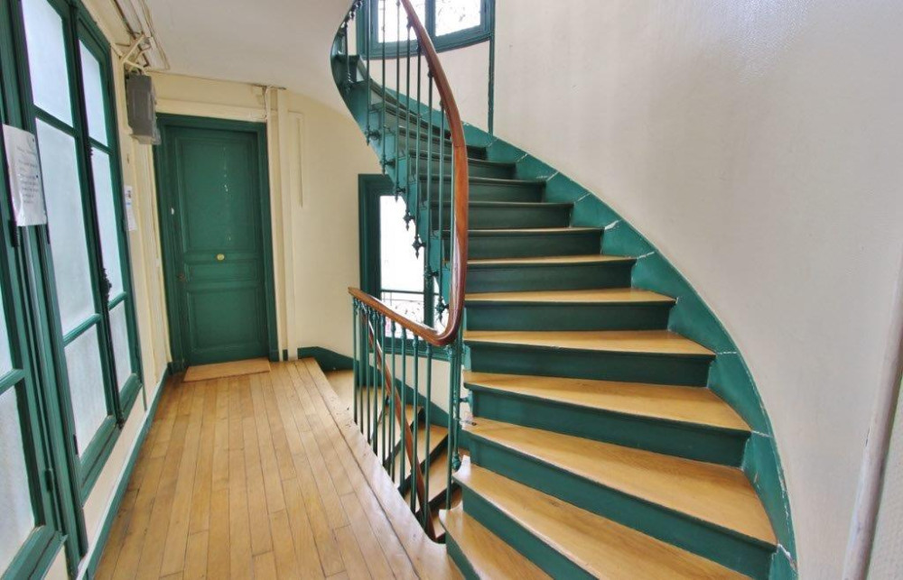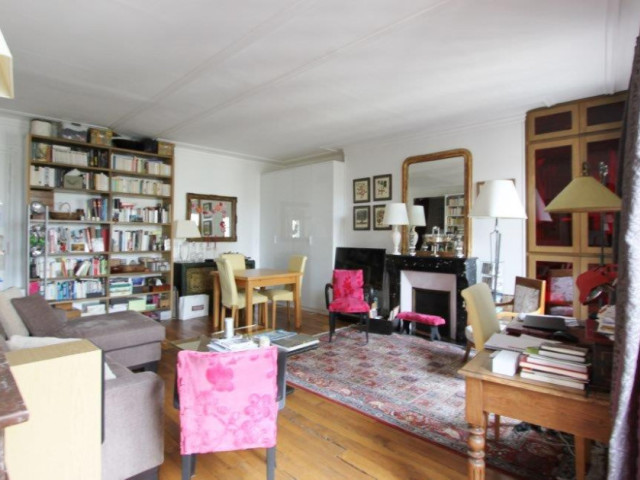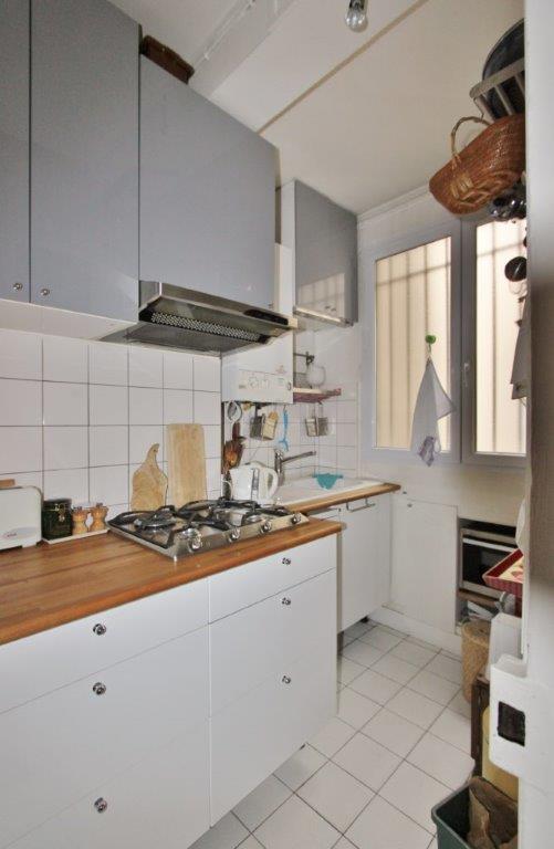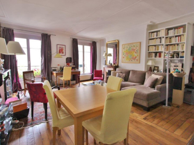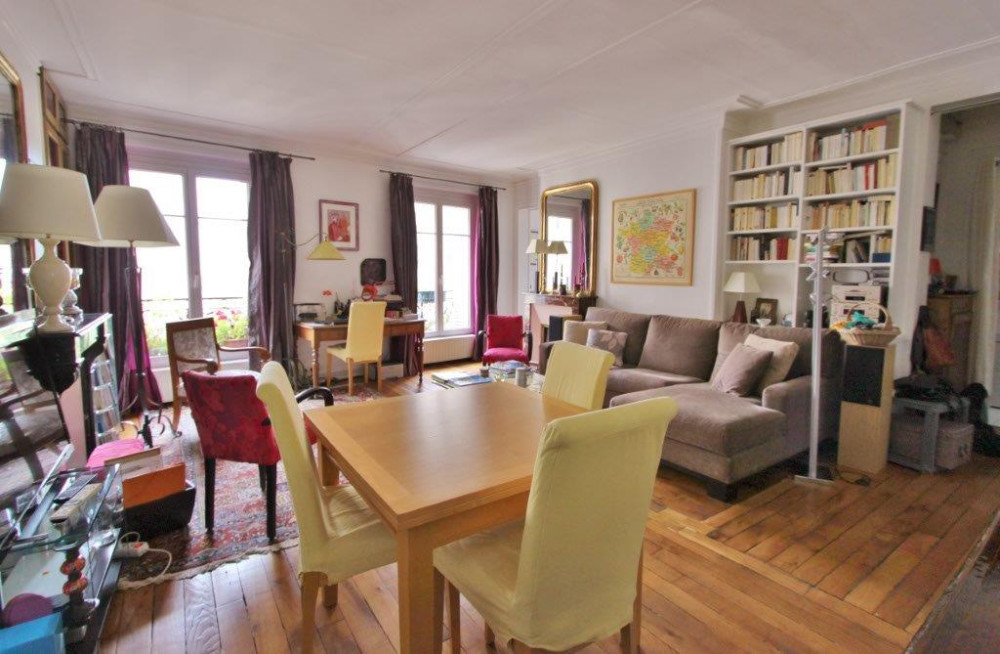 Folie Méricourt-République. Appartement 2 pièces 50 m2 situé au 4ème étage (sans ascenseur) d’un charmant immeuble ancien. Grand séjour 30 m2 avec 2 fenêtres, une chambre, une salle de bain, cuisine séparée. Vue agréable dégagée. Orientation Ouest-Est. Lumineux. Charme, parquet, moulures, cheminées. Très bon état général. Chauffage individuel gaz. Cave