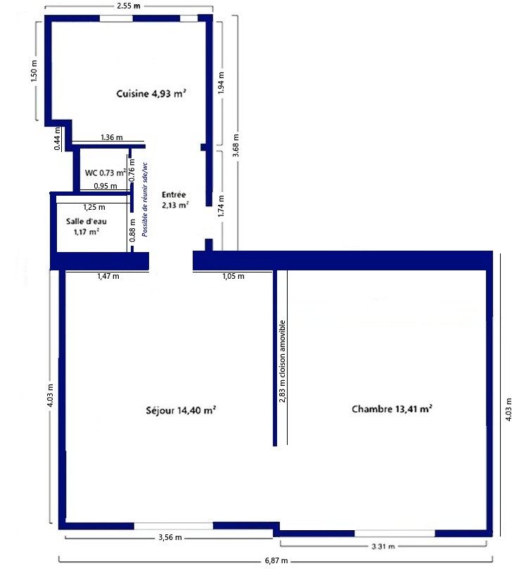 Il offre une entrée, un séjour lumineux, une chambre, une cuisine indépendante, une salle d’eau et des toilettes séparées. Le chauffage est individuel au gaz.