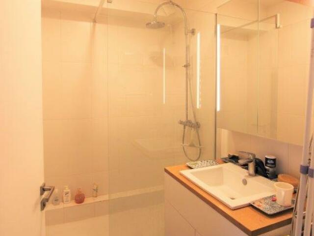 Entrée , beau séjour avec 2 fenêtres, grande cuisine aménagée et équipée, une grande chambre avec placards penderie, Salle de douche avec meuble vasque, wc séparés avec lave mains, grande cave.